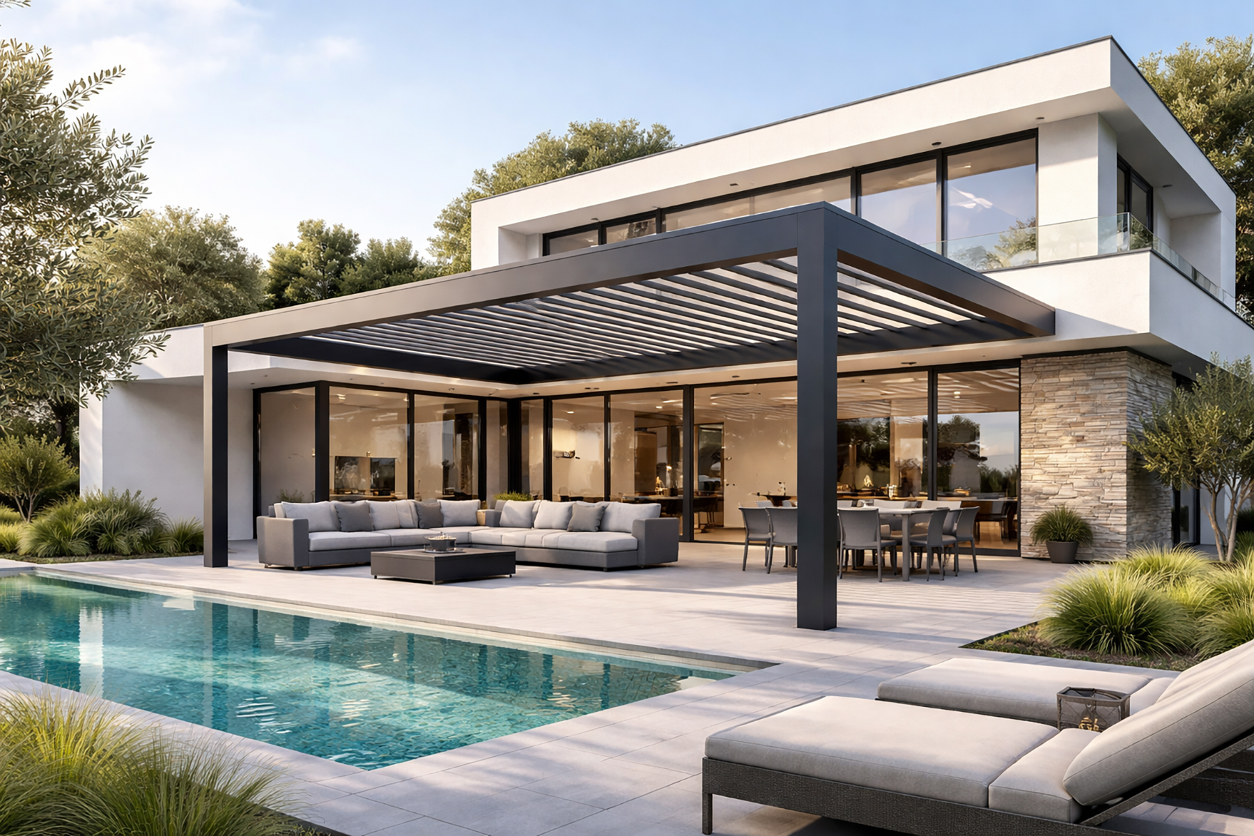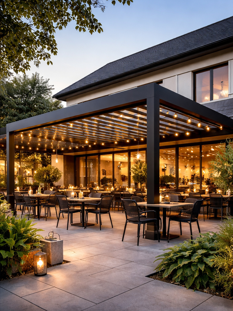 Verstelbare lamellen, subtiele LED-verlichting en een geïntegreerd waterafvoersysteem zorgen voor optimaal comfort. Technologie wordt discreet verwerkt, zodat uw pergola een harmonieuze verlenging van uw woning blijft.